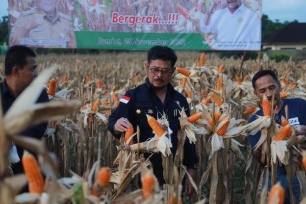 Menteri Pertanian Syahrul Yasin Limpo (Mentan SYL) menggelar panen jagung di kawasan Instalasi Penelitian dan Pengkajian Teknologi Pertanian (IP2TP) Banjarbaru Selatan, Kalimantan Selatan. Jumat, 25 November 2022.