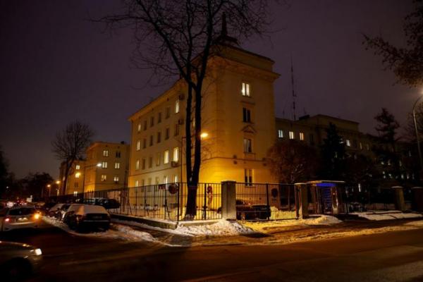 Gedung Markas Besar Polisi Polandia, tempat terjadinya ledakan yang menyebabkan pimpinan polisi terluka di Warsawa, Polandia 15 Desember 2022. Foto: Reuters