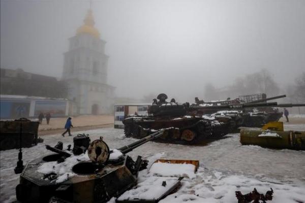 Kendaraan lapis baja dan peralatan militer Rusia yang rusak, yang disita oleh Angkatan Darat Ukraina, dan dipamerkan di Kyiv, pada 17 Desember 2022. (Foto file - Anadolu Agency)