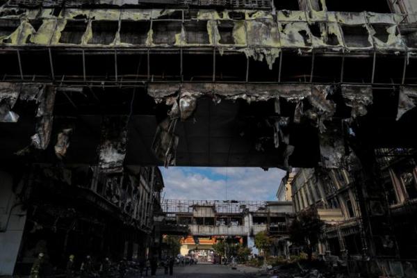 Sekitar 400 karyawan dan pelanggan berada di kasino dan hotel Grand Diamond City di Poipet, sebuah kota di perbatasan Thailand, ketika kebakaran terjadi pada dini hari Kamis, meninggalkan gedung yang dimusnahkan pada sore hari.