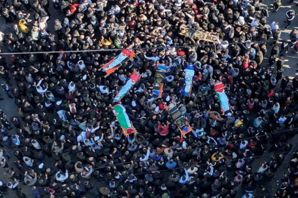 Para pelayat membawa jenazah warga Palestina yang tewas dalam serangan Israel di Jenin, Tepi Barat yang diduduki Israel 26 Januari 2023. Foto: Reuters