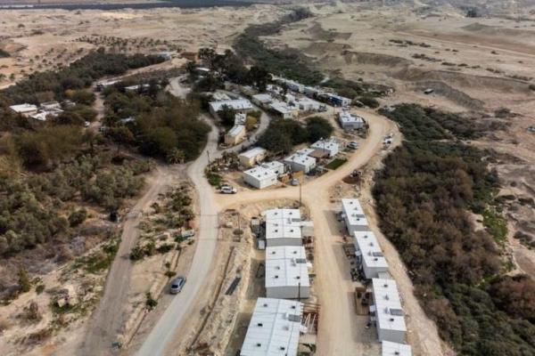 Tampilan udara menunjukkan sekelompok rumah mobil di Beit Hogla, sebuah pemukiman di Tepi Barat yang diduduki Israel, 15 Februari 2023. Foto: Reuters