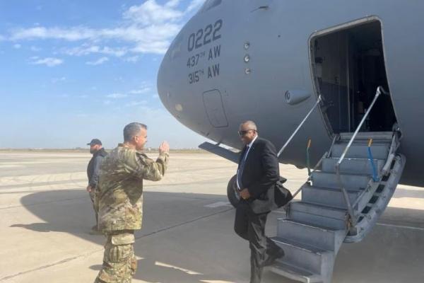 Menteri Pertahanan A.S. Lloyd Austin saat perjalanan mendadaknya ke Baghdad, Irak, 7 Maret 2023. Foto: Reuters
