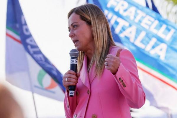 Pemimpin partai nasionalis Italia dan calon perdana menteri Giorgia Meloni, di Naples, Italia, 23 September 2022. Foto: Reuters