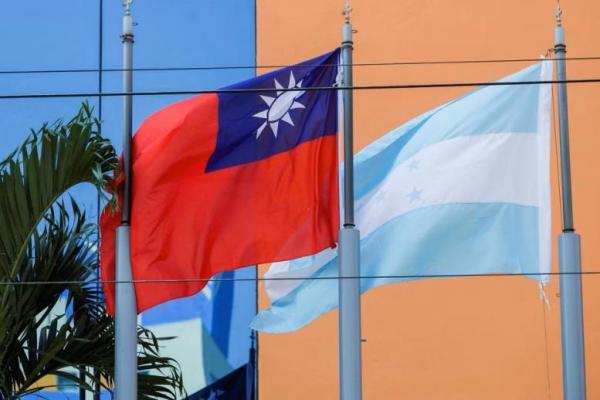 Bendera Taiwan dan Honduras berkibar tertiup angin di luar Kedutaan Besar Taiwan di Tegucigalpa, Honduras 15 Maret 2023. Foto: Reuters
