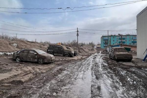 Mobil-mobil yang diselimuti debu vulkanik setelah letusan gunung berapi Shiveluch di pemukiman Klyuchi di Semenanjung Kamchatka, Rusia 11 April 2023. Foto: Reuters