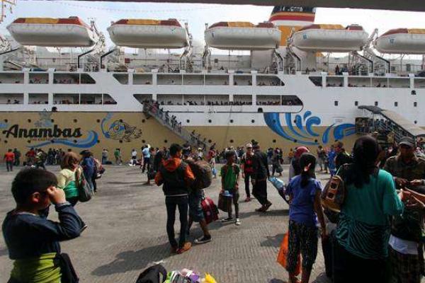 Penumpang KM Kelud dari Pulau Jawa dan Batam turun dari kapal saat tiba di Terminal Dermaga Pelabuhan Belawan, Medan, Sumatra Utara (foto: Antara/ bisnis.com)