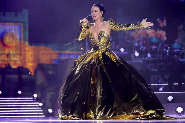 Katy Perry juga berbagi beberapa foto dan video dari pertunjukannya yang mewah, di mana dia mengenakan gaun emas berkilau oleh Vivienne Westwood.