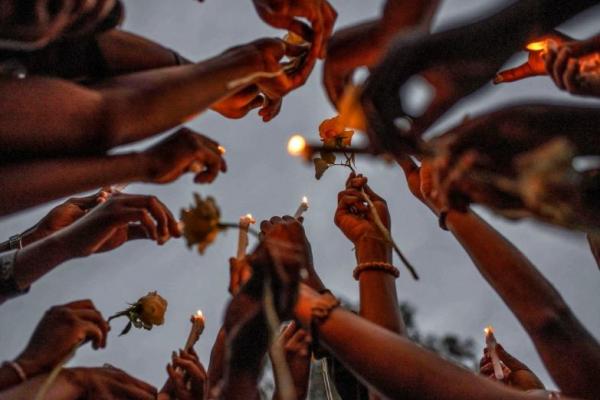 Warga sipil Kongo memegang lilin untuk memberikan penghormatan kepada para korban banjir di Goma, Republik Demokratik Kongo 9 Mei 2023. Foto: Reuters