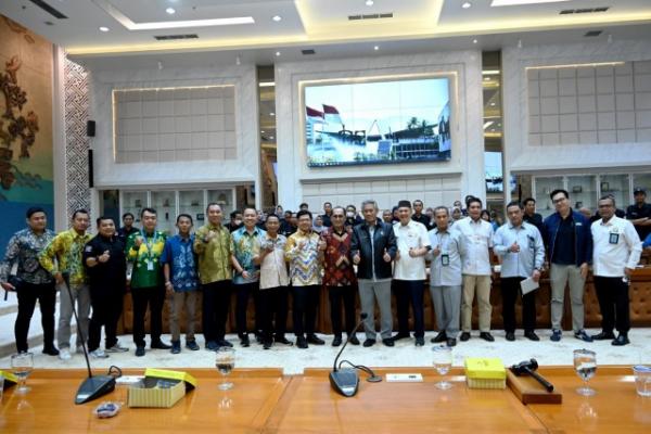 Kepala Biro Pemberitaan Setjen DPR RI Indra Pahlevi (tengah berjaket) foto bersama rombongan Sekretariat Dewan DPRD Kalimantan Selatan. Foto: dpr
