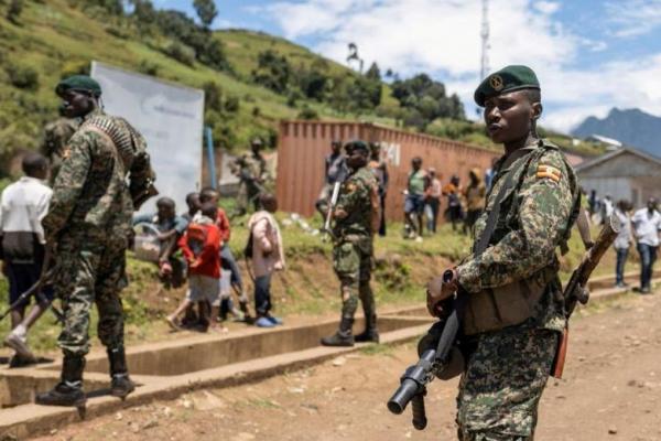 Anggota tentara Uganda, bagian dari Pasukan Regional Komunitas Afrika Timur berpatroli di pemukiman, wilayah Rutshuru, Republik Demokratik Kongo 19 April 2023. Foto: Reuters