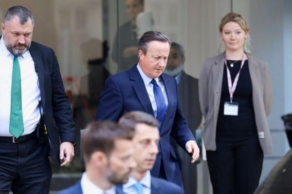 Mantan Perdana Menteri Inggris David Cameron setelah memberikan bukti pada Penyelidikan COVID-19, di London, Inggris, 19 Juni 2023. Foto: Reuters