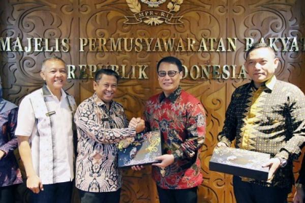 Wakil Ketua MPR, Ahmad Basarah menerima tim Pansus Ranperda Provinsi Kalimantan Timur tentang Pendidikan Pancasila dan Wawasan Kebangsaan di Gedung MPR RI, Jumat (23/6/23). (Foto: Humas MPR)