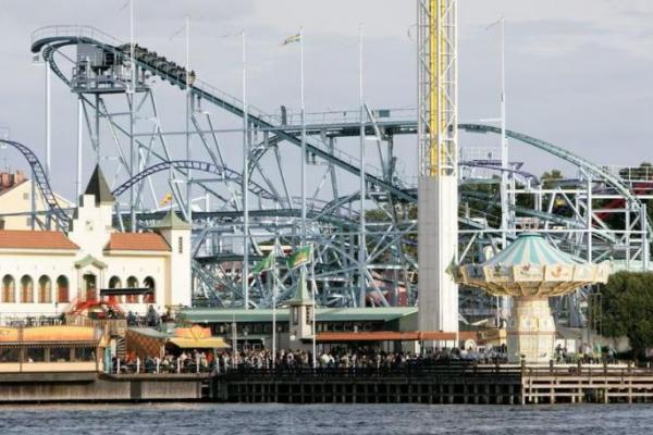 Orang-orang mengunjungi taman hiburan Grona Lund di Stockholm, Swedia, 5 September 2009. Foto: Reuters