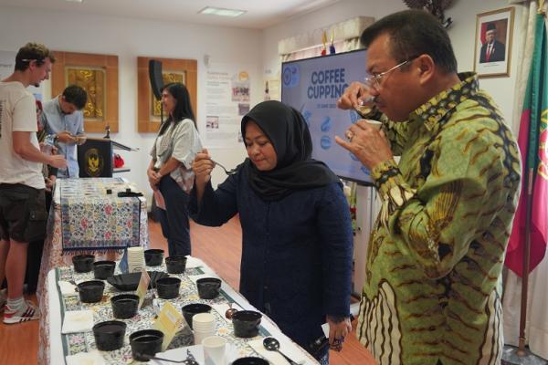 LISABON - Kedutaan Besar Republik Indonesia (KBRI) di Lisabon, Portugal bersama dengan Java Halu Coffee mengadakan acara pencicipan kopi (Coffee Cupping) di kantor KBRI Lisabon dalam upaya mempromosikan keunikan dan kualitas biji kopi Indonesia