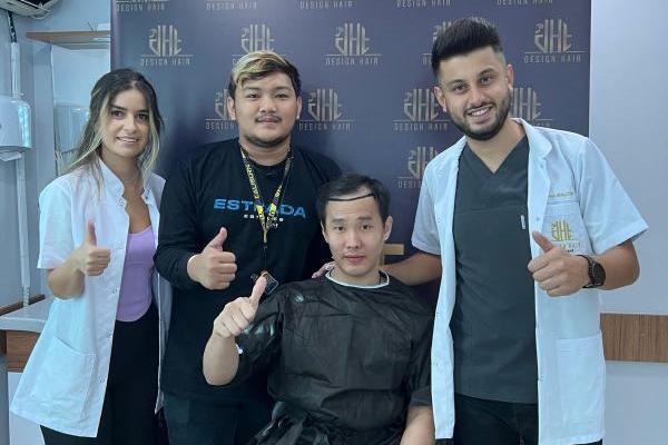 Alif Estrada (kaso hitam) bersama pasien Tanam Rambut dan dua dokter asal Turki. Foto: Dok Estrada Travel