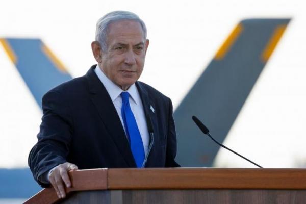 Perdana Menteri Israel Benjamin Netanyahu menyampaikan pernyataan di Pangkalan Angkatan Udara Palmachim dekat kota Rishon Lezion, Israel 5 Juli 2023. Foto: Reuters