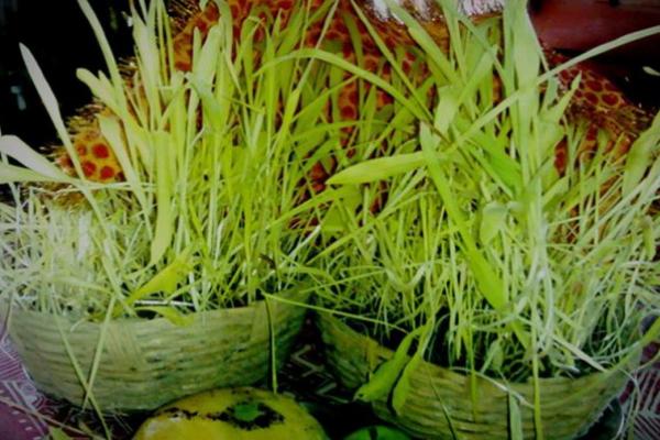 Kepala setiap keluarga menabur lima sampai tujuh jenis benih dalam mangkuk yang terbuat dari daun atau keranjang bambu 10 hari sebelum festival dan menyiraminya setiap hari.