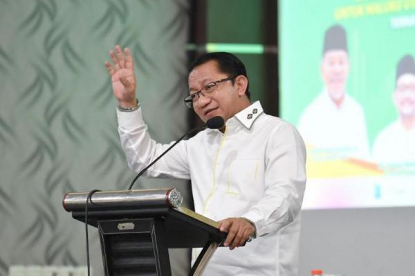 Sekretaris Jenderal Kementerian Desa, Pembangunan Daerah Tertinggal, dan Transmigrasi Taufik Madjid dalam acara Musyawarah III Forum Kerukunan Umat Beragama (FKUB) Provinsi Maluku Utara dan Bacarita Kerukunan untuk Maluku Utara Damai pada Pemilu 2024 di Ternate, Selasa (18/7/2023). (Foto: Humas Kemendes PDTT)