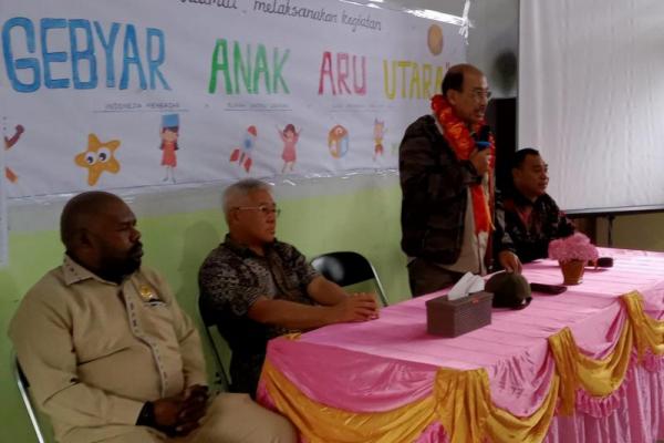 DOBO - Wakil Ketua DPD RI Nono Sampono, didampingi Bupati Kepulauan Aru dr Johan Gonga, Wakil Bupati Muin Sogalrey dan Ketua DPRD Kabupaten Kepulauan Aru Udin Belsigaway, Kepala Dinas Kominfo Armand Walay, Camat Aru Utara, Kapolsek Aru Utara, serta para kepala desa sekecamatan Aru Utara, menghadiri Gebyar Anak Aru Utara yang dilakukan dalam rangka memperingati Hari Anak Nasional yang jatuh pada tanggal 23 Juli 2023.