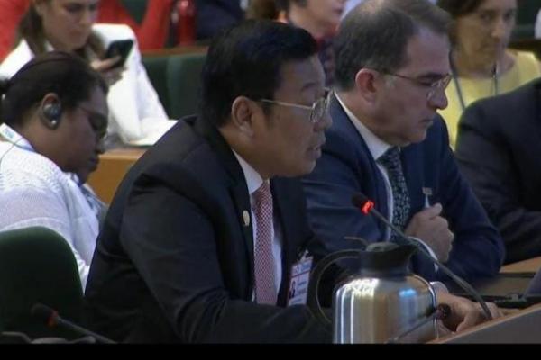 Kepala Badan Pangan Nasional/National Food Agency (NFA) Arief Prasetyo Adi di Forum (UNFSS) +2, di Roma, Italia, Rabu (26/7/2023). (foto:NFA)