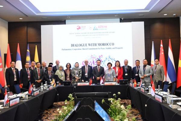 JAKARTA - Badan Kerjasama Antar Parlemen (BKSAP) DPR RI melakukan dialog dengan dialog dengan Parlemen Maroko selaku negara observer Sidang Umum ke-44 di ASEAN Inter-Parliamentary Assembly (AIPA), Selasa (8/8/2023). Dalam pertemuan yang berlangsung kurang lebih dua jam itu, Parlemen Maroko menyatakan membukan diri untuk membangun kerja sama berkelanjutan dengan negara ASEAN.