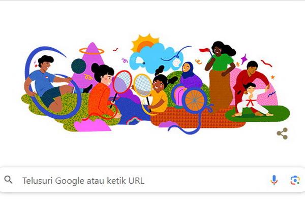 Sebab, tulisan "Google" kini diilustrasikan sedemikian rupa lewat sejumlah orang yang sedang melakukan beberapa kegiatan dengan visual dan warna yang meriah.