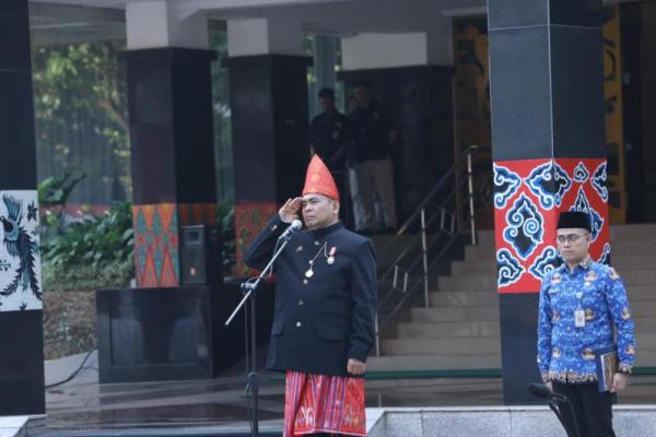 JAKARTA - Wakil Menteri Desa, Pembangunan Daerah Tertinggal dan Transmigrasi (Wamendes PDTT) Paiman Raharjo menjadi Inspektur Upacara Peringatan HUT ke-78 RI di Lapangan Kantor Kemendes Kalibata pada Kamis (17/8/2023).