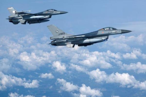Jet tempur F-16 Angkatan Udara Belanda terbang di wilayah utara dan timur, 4 Juli 2023. Foto: Reuters