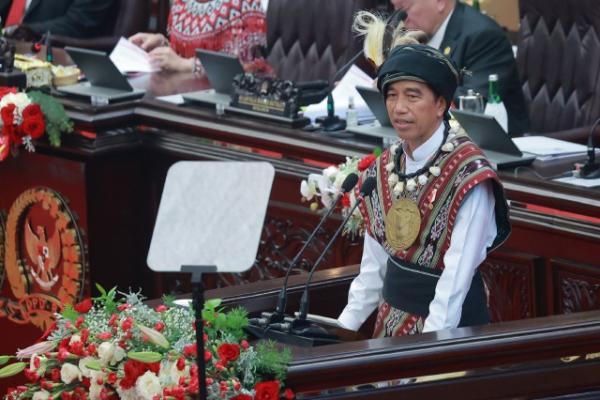 Demikian disampaikan Presiden Jokowi saat Pidato Kenegaraan dalam Sidang Tahunan MPR RI dan Sidang Bersama DPR RI dan DPD RI Tahun 2023 dalam rangka HUT Kemerdekaan RI ke-78 di Gedung DPR/MPR/DPD RI, Senayan, Jakarta, Rabu (16/8/2023).