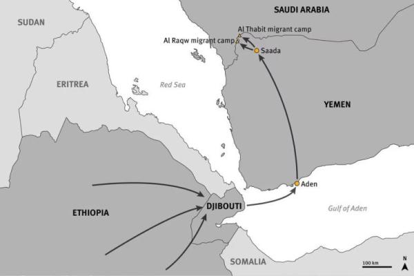 Rute migrasi dari Tanduk Afrika, melintasi Teluk Aden, melalui Yaman dan ke Arab Saudi – salah satu negara terkaya di dunia Arab – merupakan koridor yang sudah mapan bagi para migran Ethiopia.
