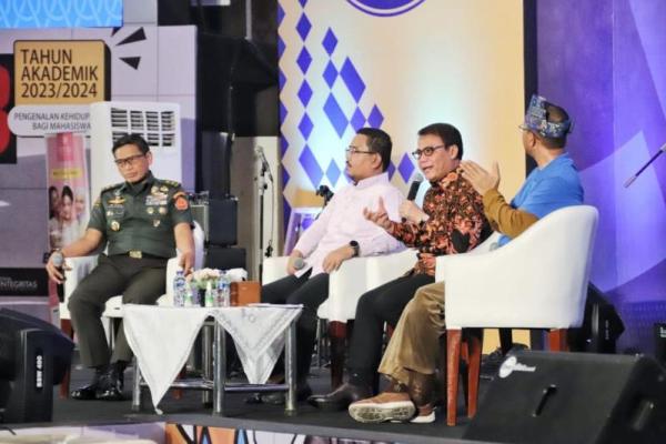 Wakil Ketua MPR Ahmad Basarah dalam acara penutupan Pengenalan Kehidupan Kampus bagi Mahasiswa Baru (PKKMB) Universitas Airlangga (Unair), Surabaya, Sabtu (26/8/23). (Foto: Humas MPR)