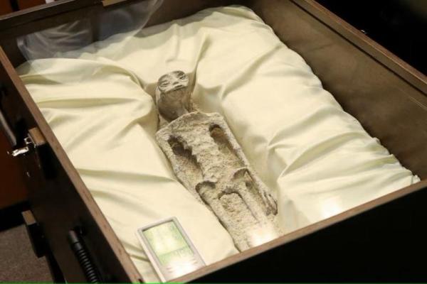 Semua orang berkerumun untuk melihat lebih baik. Mayat-mayat tersebut tampak kuno dan memiliki ciri-ciri yang sama dengan manusia: dua mata, satu mulut, dua lengan, dan dua kaki. Maussan mengklaim mereka ditemukan sekitar tahun 2017 di Peru, dekat Garis Nazca pra-Columbus.