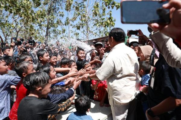 Menhan Prabowo Subianto meresmikan sumur bor bantuan Kementerian Pertahanan (Kemenhan) RI di Padukuhan Klegung, Kalurahan Ngoro-oro, Kapanewon Patuk, Kabupaten Gunungkidul. (Foto: Ist)