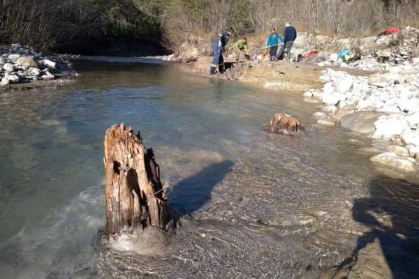 Subfosil Pohon pinus Skotlandia di sungai Drouzet dekat Gap di Pegunungan Alpen Prancis Selatan dalam foto tahun 2021 via Reuters