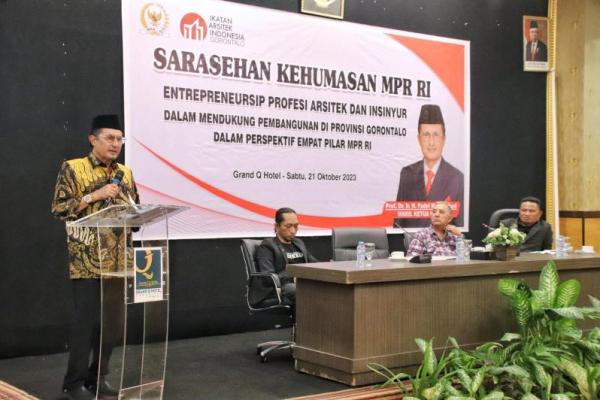 Sarasehan Kehumasan MPR ini dihadiri Deputi Bidang Administrasi Sekretariat Jenderal MPR, Siti Fauziah, SE, MM, Hana Hasanah, serta para arsitek yang tergabung dalam Ikatan Arsitek Indonesia (IAI) Gorontalo.