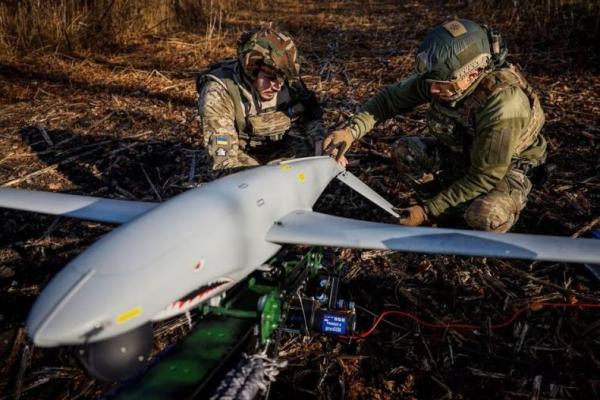 Prajurit Brigade Pengintai Artileri Terpisah ke-15 Ukraina mempersiapkan drone Shark untuk diluncurkan, di Kharkiv, Ukraina, 30 Oktober 2023. Foto: Reuters