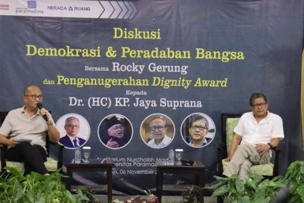 Diskusi Demokrasi dan Peradaban Bangsa serta Penganugerahan Dignity Award di Universitas Paramadina, Jakarta, Senin (6/11/2023). Foto: dok. katakini