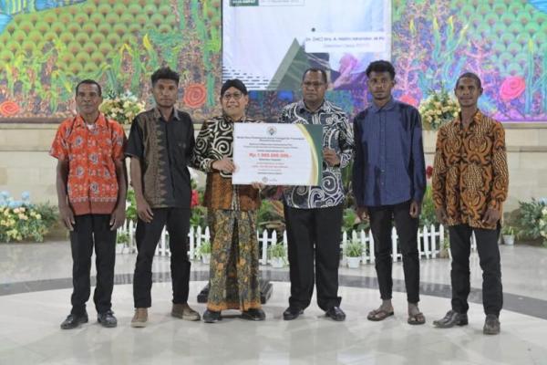 Mendes PDTT Abdul Halim Iskandar memberikan bantuan Demplot program TEKAD tahun anggaran 2023 senilai Rp1,9 Miliar kepada 19 kelompok di 19 Kampung di Kabupaten Raja Ampat. (Foto: Kemendes PDTT)