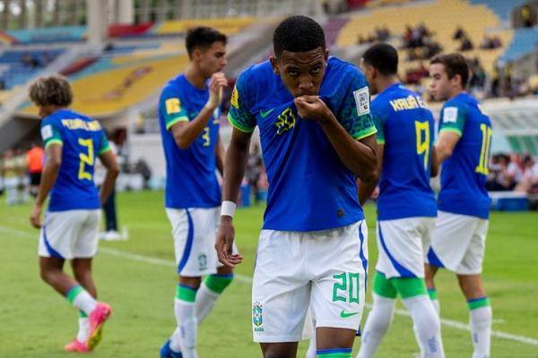 SOLO - Timnas Brasil U-17 sukses melenggang ke babak Perempatfinal Piala Dunia U-17 usai kalahkan Timnas Ekuador 3-1 dalam laga yang dogelar di Stadion Manahan, Solo, Jawa Tengah pada Senin (20/11/2023) sore.