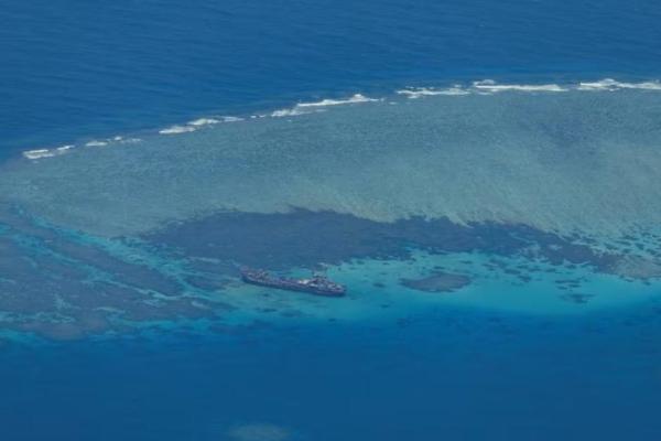 Pemandangan dari udara menunjukkan BRP Sierra Madre di Second Thomas Shoal, yang dikenal secara lokal sebagai Ayungin, di Laut Cina Selatan, 9 Maret 2023. Foto: Reuters