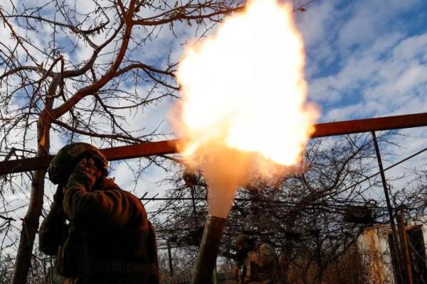 Anggota unit Tujuan Khusus Omega Garda Nasional Ukraina menembakkan mortir ke arah pasukan Rusia di garis depan kota Avdiivka, wilayah Donetsk, Ukraina 8 November 2023. Foto via Reuters