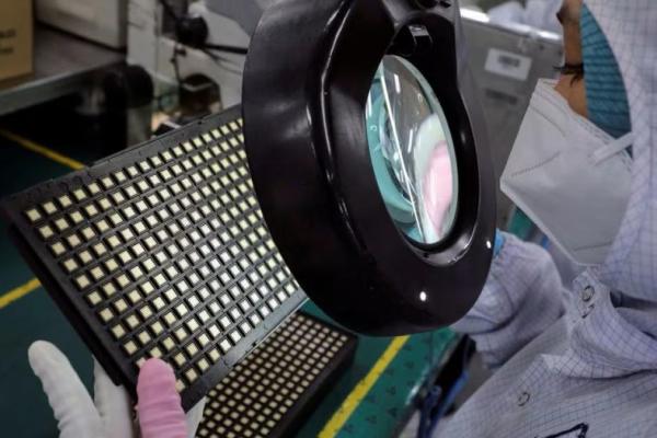 Seorang pekerja memeriksa chip semikonduktor di pabrik pengemasan chip Unisem Berhad di Ipoh, Malaysia 15 Oktober 2021. Foto: Reuters