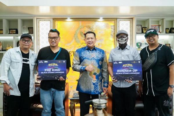 JAKARTA - Ketua Umum Ikatan Motor Indonesia (IMI) Bambang Soesatyo (Bamsoet) menyerahkan hadiah kepada Juara I, "The King", IMX Black Stone Live Modz Challenge 2023 All Star, yang dimenangkan Tim Artis terdiri dari Uya Kuya, Baim Wong, dan Atta Halilintar. Serta Runner Up yang diraih Tim Reviewer Otomotif yang terdiri dari Fitra Eri, Om Mobi, dan Ridwan Hanif.