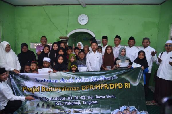 "Sebenarnya setiap bulan, DKM Baiturrahman menggelar santunan dan pemberian zakat sedekah kepada yatim piatu dan kaum duafa di lingkungan DPR RI. Namun kali ini untuk pertama kalinya kami menggelar di luar gedung DPR RI, tepatnya di kampung Beduyut, Rawa Boni, Pakuhaji, Tangerang, Banten ini," kata Ketua DKM Masjid Baiturrahman DPR RI, Suratna, seperti dilansir dpr.go.id, Kamis (11/1/2024).