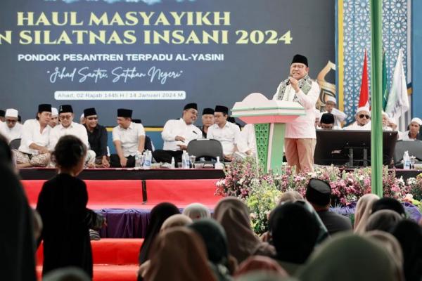 "Hari ini saya bisa hadir di Haul Masyayikh Pondok Pesantren Al-Yasini pimpinan KH. A. Mujib Imron. Ini sungguh potensi pendidikannya sangat bagus, masyarakat dan kekuatan santri di Pasuruan ini sangat besar," kata Gus Imin dalam keterangannya, Minggu (14/1/2024).
