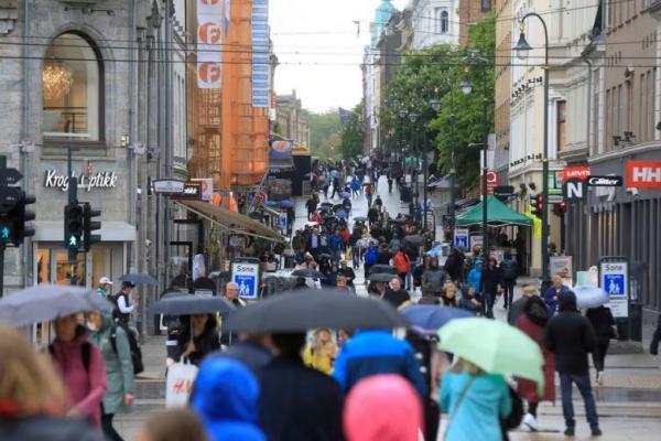 Orang-orang berjalan di jalan Karl Johans di Oslo, Norwegia 31 Mei 2017. Foto: Reuters