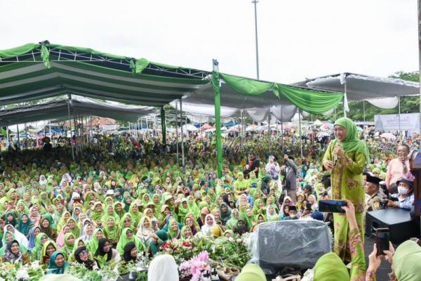 Ketua Umum Pimpinan Pusat Muslimat Nahdlatul Ulama (NU) Khofifah Indar Parawansa di Gelora Bung Karno, Jakarta, Jumat (19/20).