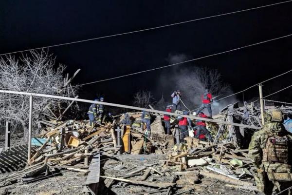 Tim penyelamat bekerja di lokasi serangan rudal Rusia di daerah kota Pokrovsk, wilayah Donetsk, Ukraina 6 Januari 2024. Handout via Reuters
