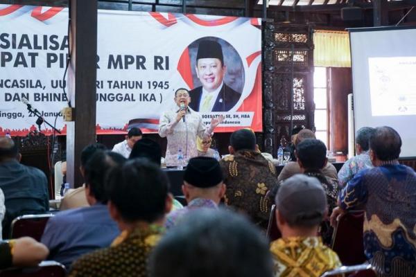 Ketua MPR Bambang Soesatyo (Bamsoet)alam Sosialisasi 4 Pilar MPR RI hari ke-10 dalam kunjungannya ke Dapil-7 Jawa Tengah bersama Forum Kepala Sekolah Kabupaten Purbalingga, Sabtu (27/1/24). (Foto: Humas MPR)